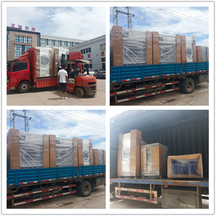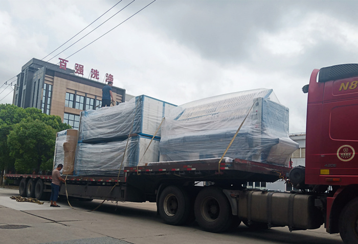 8月28日,上海百強洗滌設備制造有限公司的廠區內,工業洗衣機,烘干機燙平機等洗滌設備出廠驗收合格,正式裝車起運,即將奔赴上海、太原、哈爾濱、廣州、重慶等項目現場展開安裝。